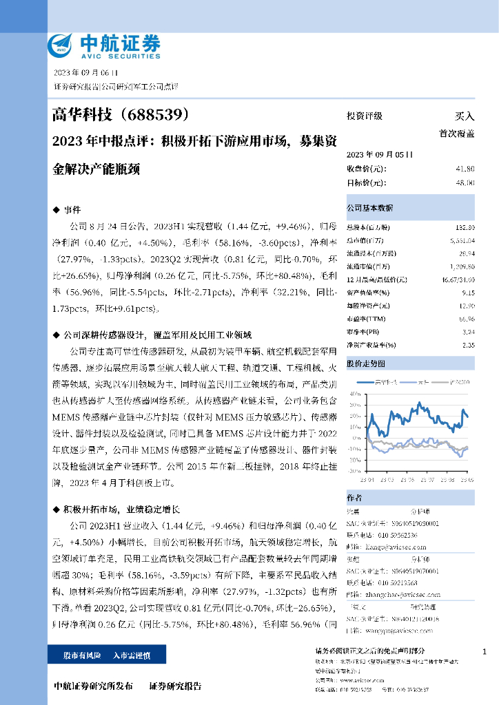 中航证券:高华科技(688539)-2023年中报点评:积极开拓下游应用市场,募集资金解决产能瓶颈.pdf