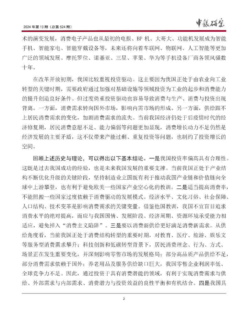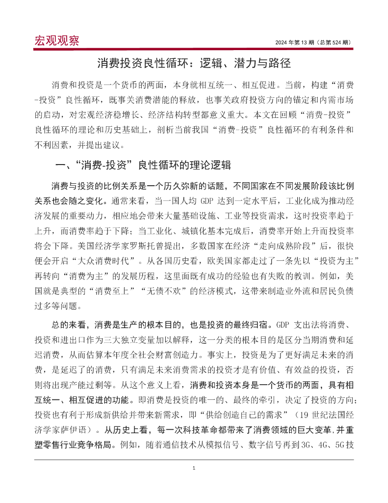中国银行研究院:《宏观观察》2024年第13期:消费投资良性循环:逻辑、潜力与路径.pdf