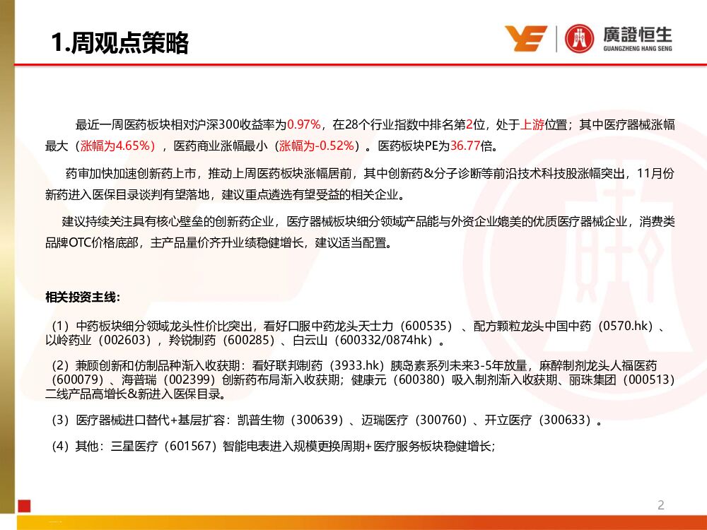 广证恒生证券研究所:医药生物行业周报:医药板块持续强势,建议关注估值和成长具有性价比的优质标的.pdf