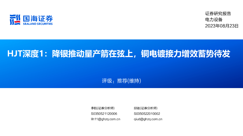 国海证券:HJT深度1:降银推动量产箭在弦上,铜电镀接力增效蓄势待发.pdf