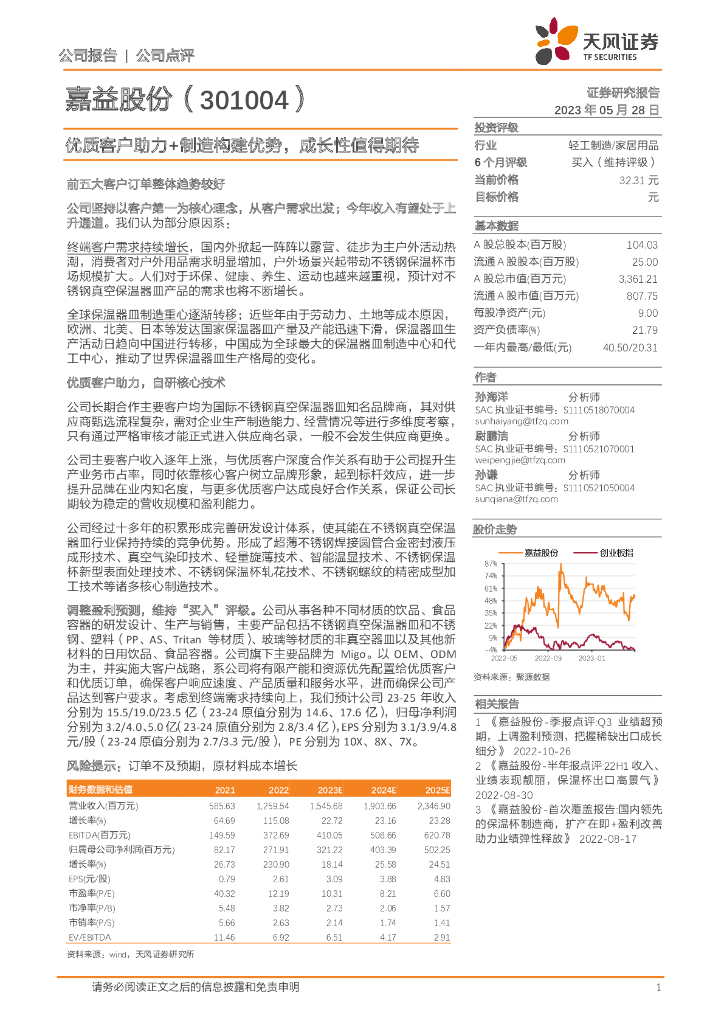 天风证券:嘉益股份(301004)-优质客户助力+制造构建优势,成长性值得期待.pdf