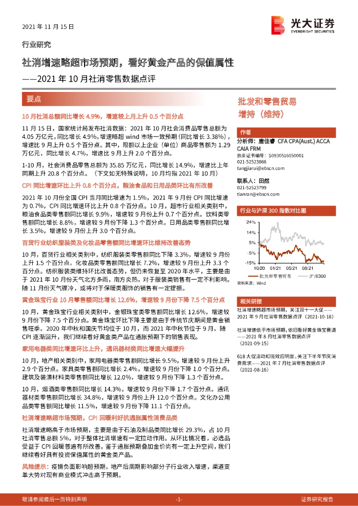 光大证券:2021年10月社消零售数据点评:社消增速略超市场预期,看好黄金产品的保值属性.pdf