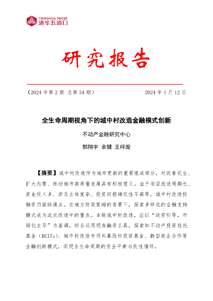 清华五道口:全生命周期视角下的城中村改造金融模式创新(2024年第2期 总第34期).pdf