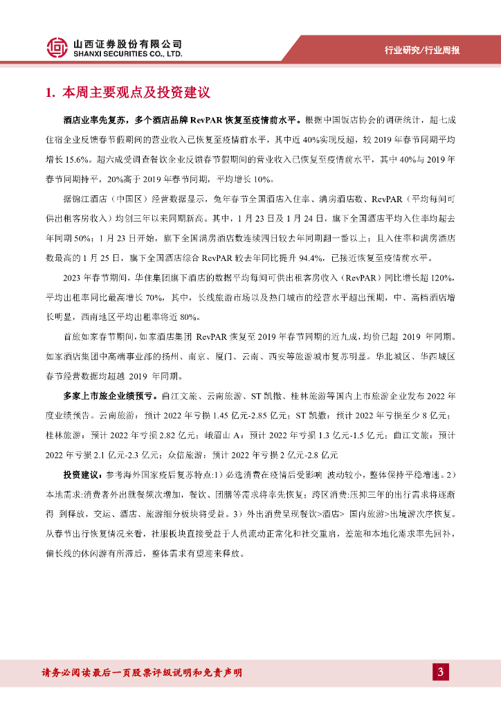 山西证券:消费者服务行业周报:酒店业率先复苏,多个酒店品牌RevPAR恢复至疫情前水平.pdf