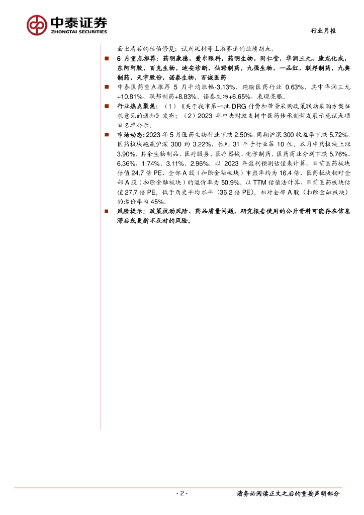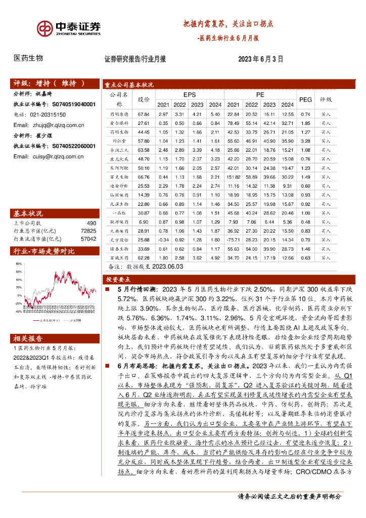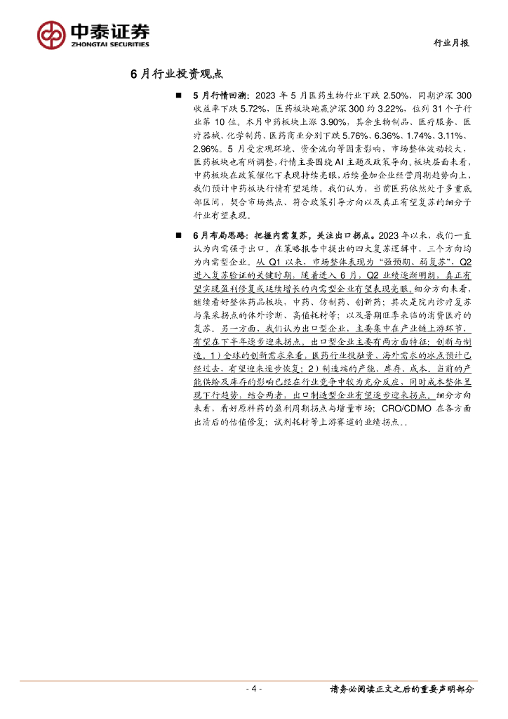 中泰证券:医药生物行业6月月报:把握内需复苏,关注出口拐点.pdf