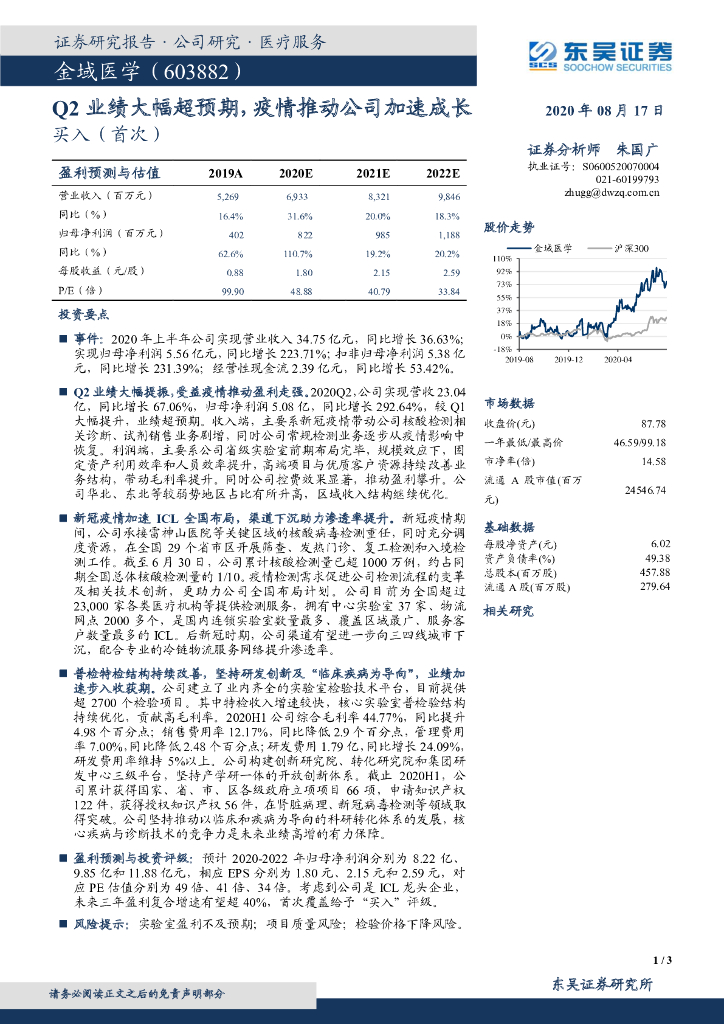 东吴证券:金域医学(603882)-Q2业绩大幅超预期,疫情推动公司加速成长.pdf