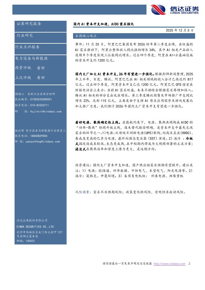 信达证券:电力设备与新能源行业点评:国内AI资本开支加速,AIDC需求强化.pdf