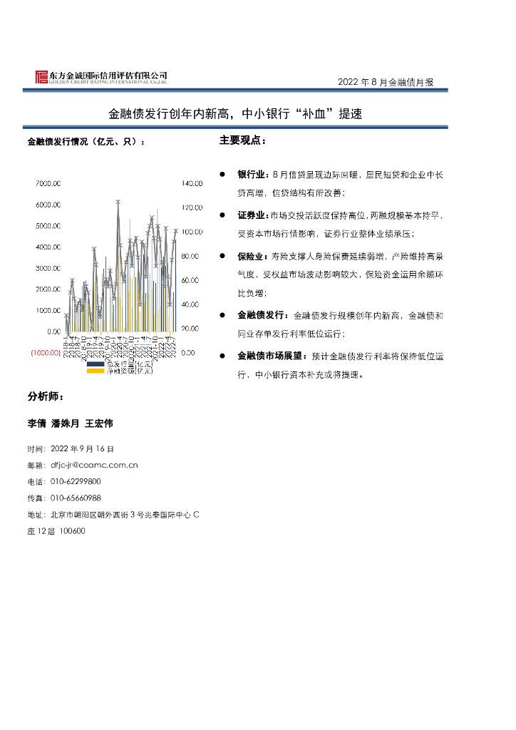 东方金诚:8月金融债月报-金融债发行创年内新高,中小银行“补血”提速.pdf