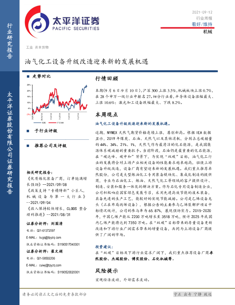 太平洋证券:机械行业周报:油气化工设备升级改造迎来新的发展机遇.pdf