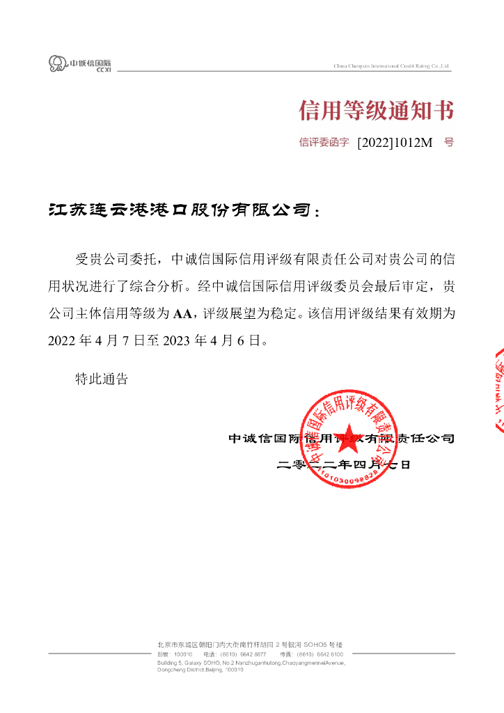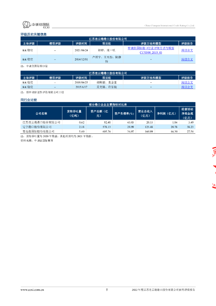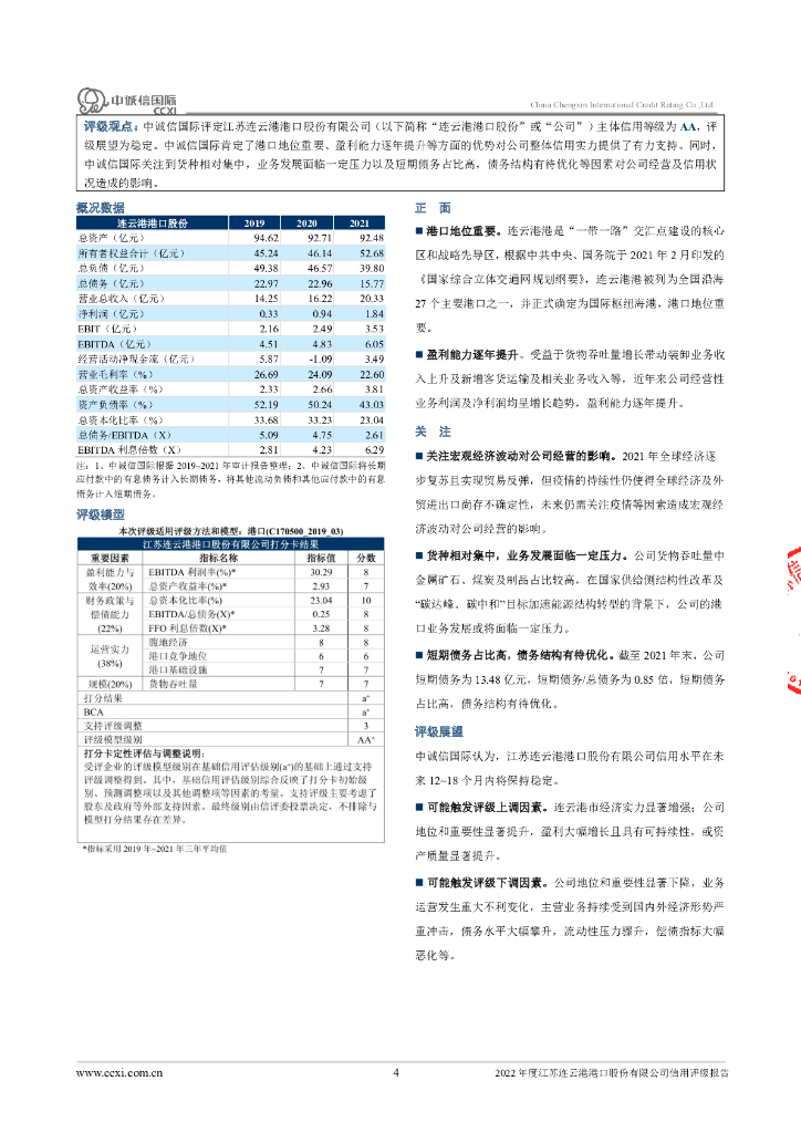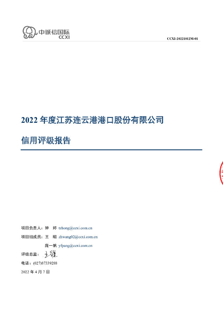 中诚信:江苏连云港港口股份有限公司主体信用评级报告及跟踪评级安排.pdf