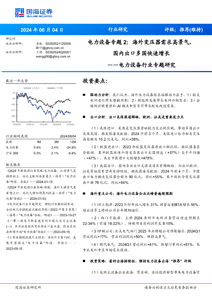 国海证券:电力设备行业专题研究:电力设备专题2:海外变压器需求高景气,国内出口多国快速增长.pdf