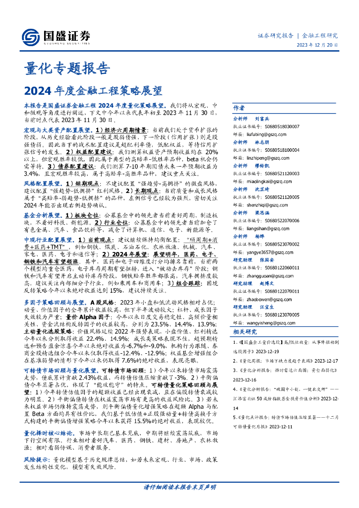国盛证券:量化专题报告-2024年度金融工程策略展望.pdf