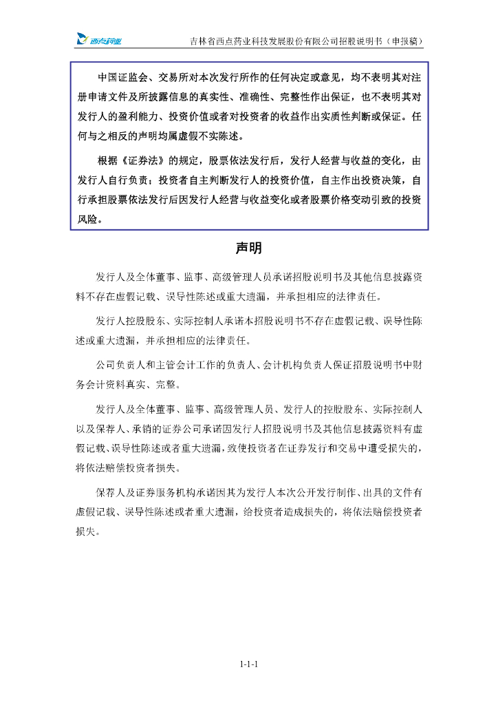 吉林省西点药业科技发展股份有限公司深交所创业板IPO上市招股说明书.pdf