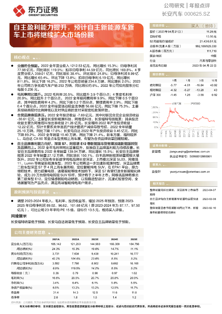 东方证券:长安汽车(000625)-自主盈利能力提升,预计自主新能源车新车上市将继续扩大市场份额.pdf