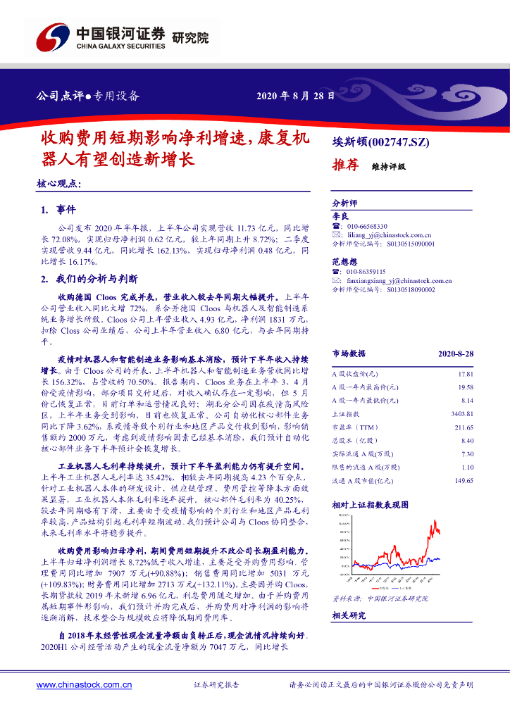 中国银河:埃斯顿(002747)-收购费用短期影响净利增速,康复机器人有望创造新增长.pdf
