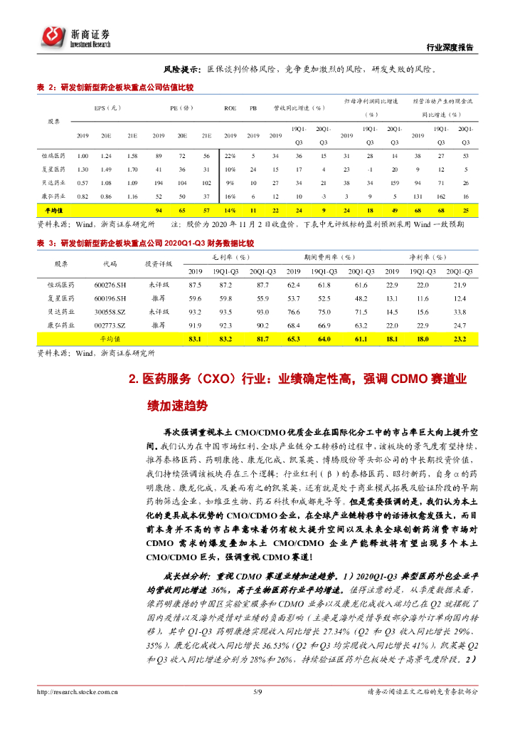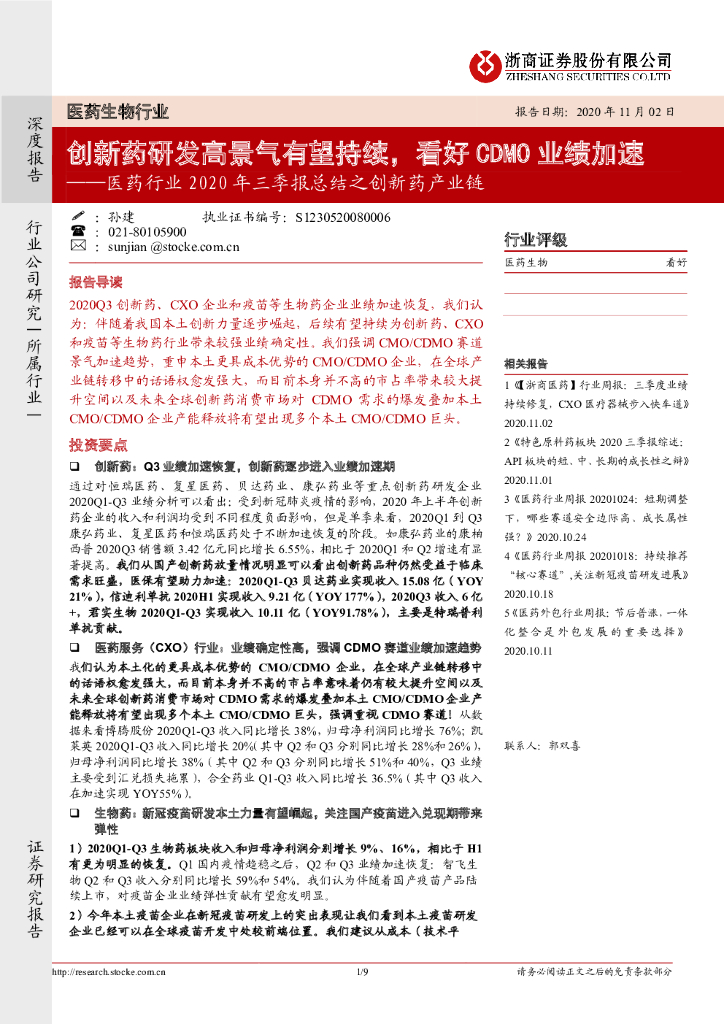 浙商证券:医药行业2020年三季报总结之创新药产业链:创新药研发高景气有望持续,看好CDMO业绩加速.pdf