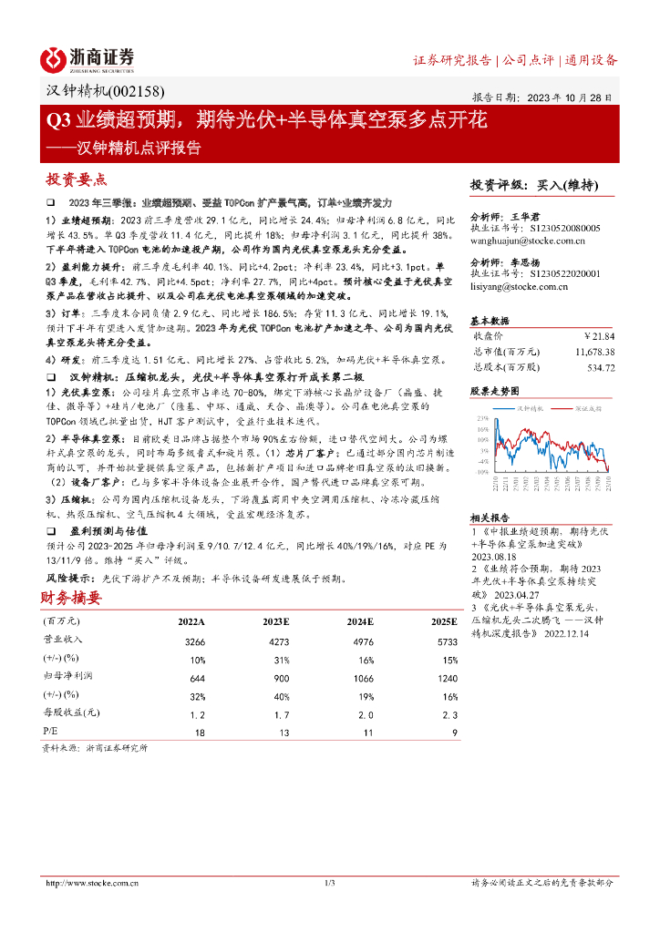 浙商证券:汉钟精机(002158)-Q3业绩超预期,期待光伏+半导体真空泵多点开花.pdf