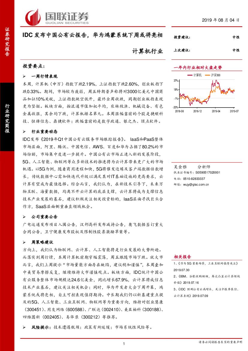 国联证券:计算机行业研究简报:IDC发布中国公有云报告,华为鸿蒙系统下周或将亮相.pdf