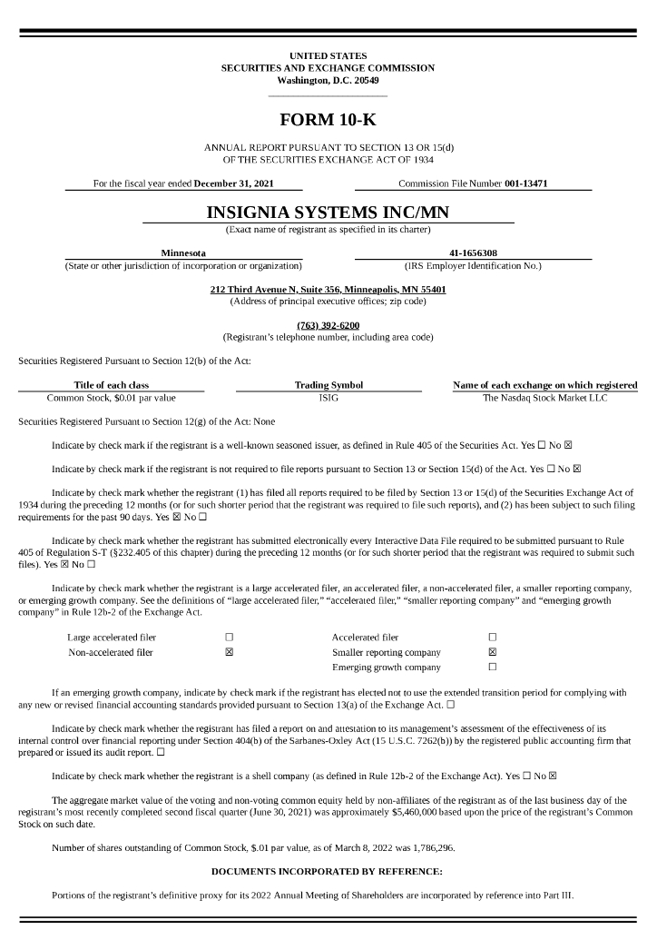 Insignia Systems, Inc.(ISIG)2021财年年度报告(英文版).pdf
