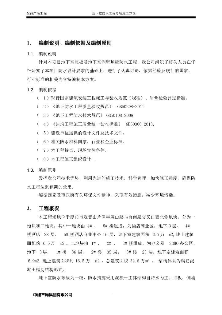 [厦门]地下室结构自防水及防水涂料施工方案.doc