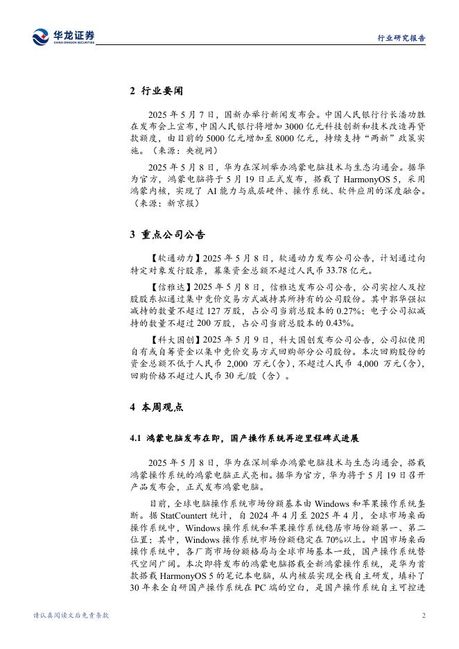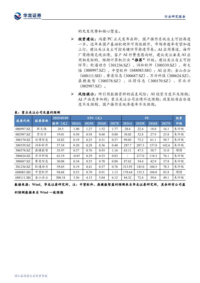 华龙证券:计算机行业周报:鸿蒙电脑发布在即,关注自主可控和AI两大主线.pdf