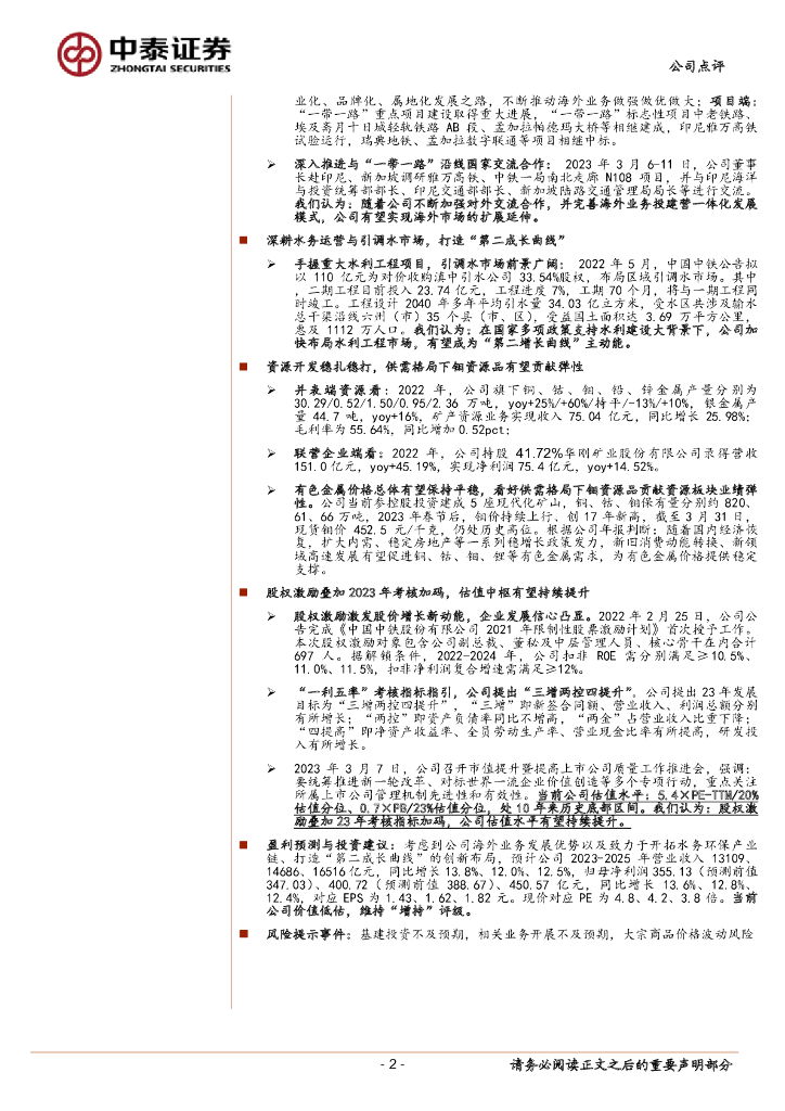 中泰证券:中国中铁(601390)-2022年度报告点评:经营性现金流净额同比高增233%,减值损失大幅收窄、资源板块高成长.pdf
