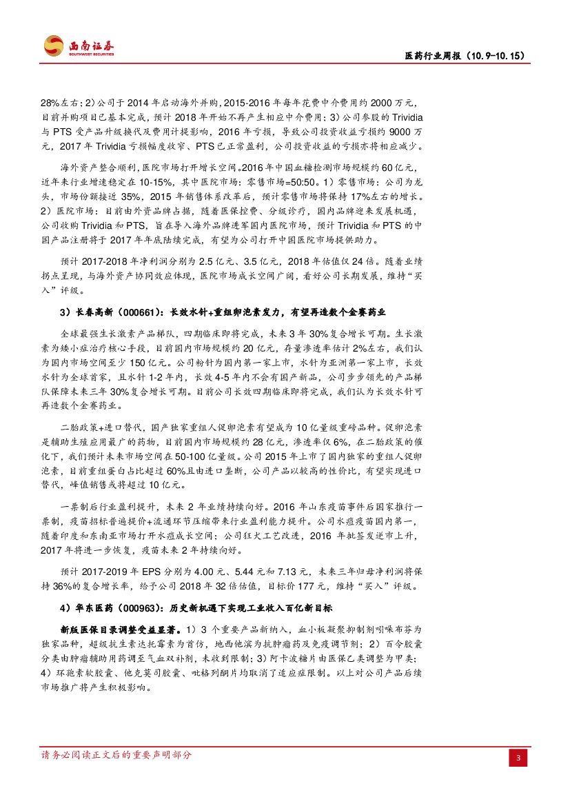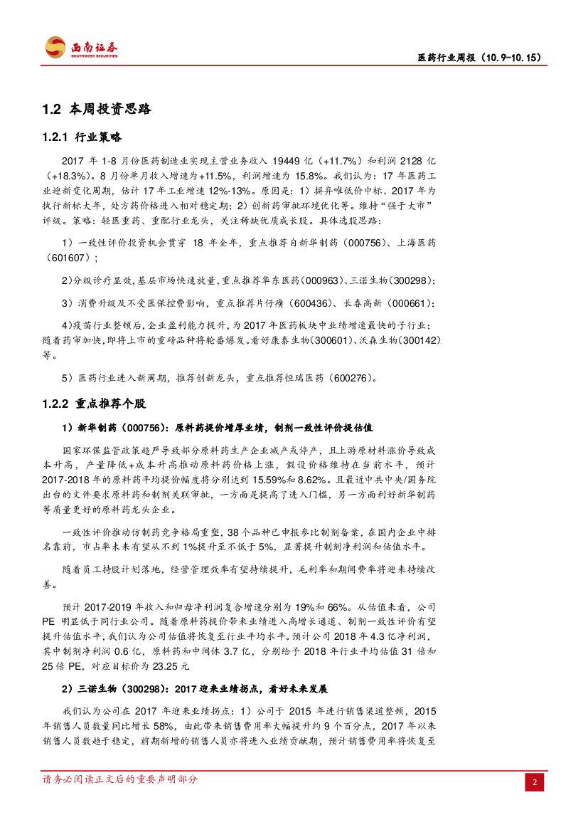 西南证券:医药行业周报:看好三季报绩优股,推荐新华制药、三诺生物、华东医药、长春高新等.pdf