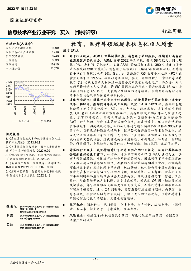 国金证券:信息技术产业行业研究:教育、医疗等领域迎来信息化投入增量.pdf
