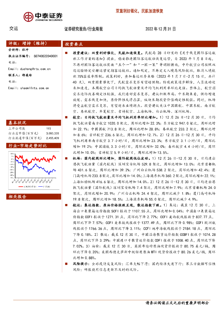 中泰证券:交运行业周报:双重利好催化,民航加速恢复.pdf