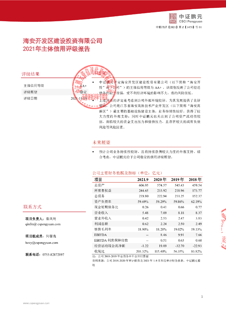 鹏元:海安开发区建设投资有限公司信用评级报告.pdf