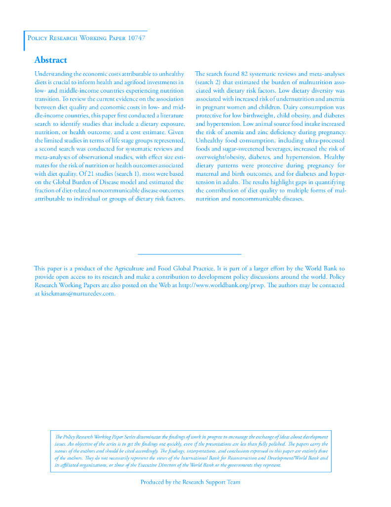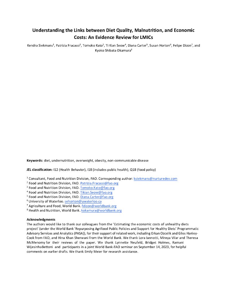 世界银行:了解饮食质量、营养不良和经济成本之间的联系:LMIC的证据综述(英文版).pdf