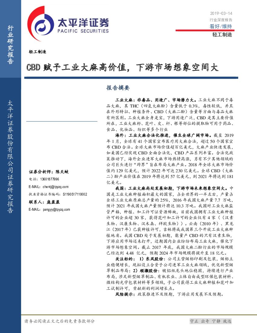 太平洋证券:轻工制造行业深度报告:CBD赋予工业大麻高价值,下游市场想象空间大.pdf
