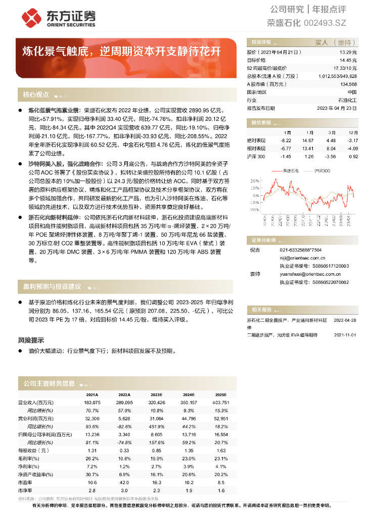 东方证券:荣盛石化(002493)-炼化景气触底,逆周期资本开支静待花开.pdf