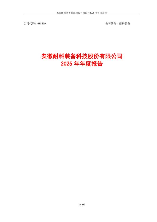 688419-耐科装备:安徽耐科装备科技股份有限公司2025年年度报告.pdf