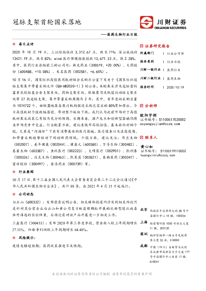 川财证券:医药生物行业日报:冠脉支架首轮国采落地.pdf
