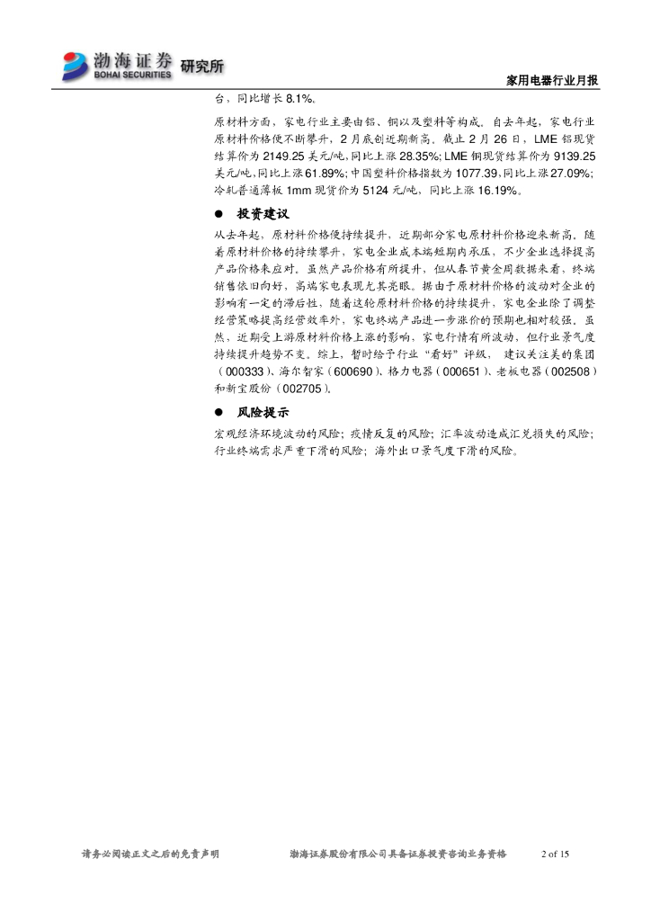 渤海证券:家用电器行业月报:原材料价格持续提升,行业景气度向上趋势不变.pdf