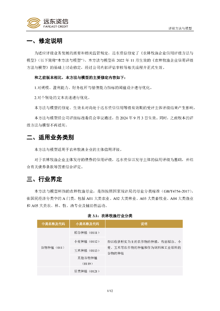 远东资信:农林牧渔企业信用评级方法与模型(FECR-NLMY-V03-202312).pdf