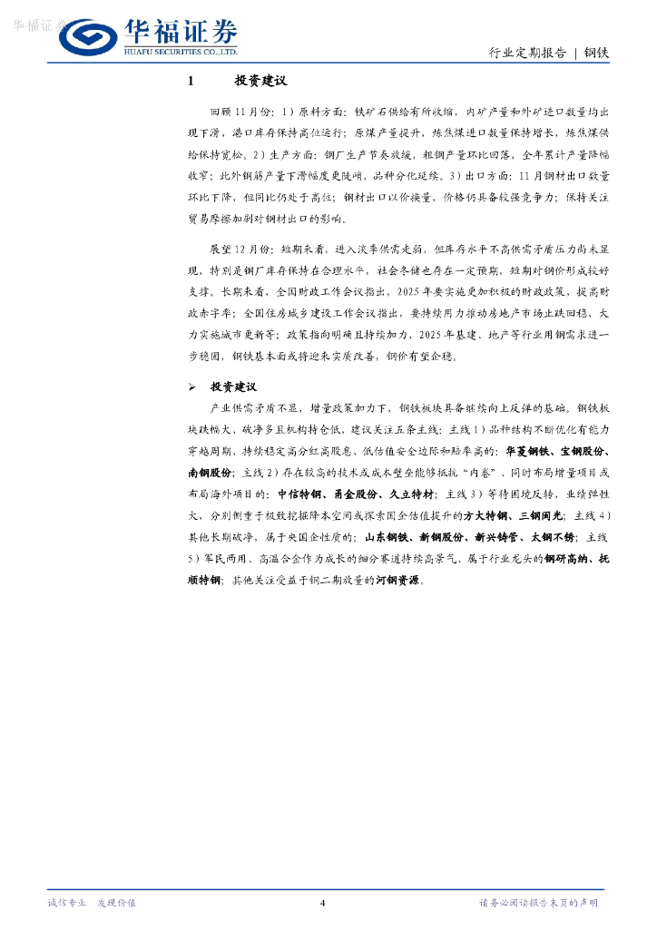 华福证券:钢铁行业月报(2024.11):钢材出口高位回落,政策利好明年钢需稳固.pdf