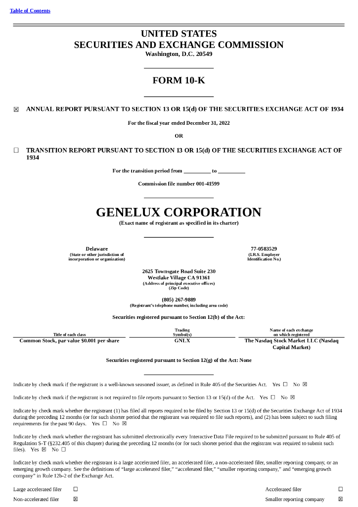 Genelux Corp(GNLX)2022财年年度报告(英文版).pdf