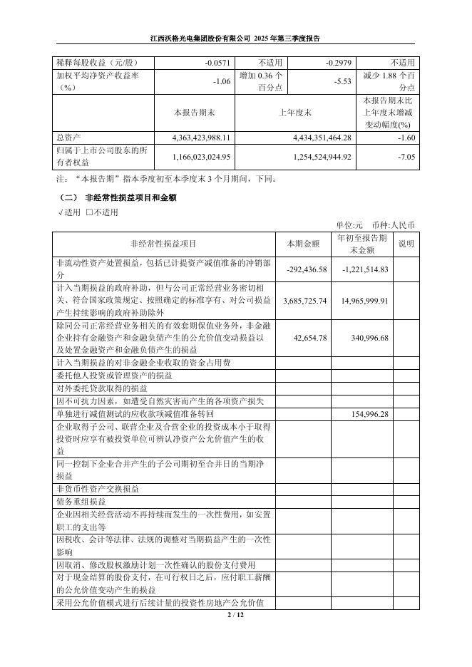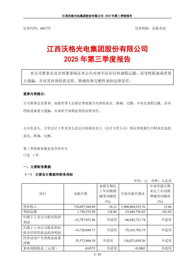 603773-沃格光电:江西沃格光电集团股份有限公司2025年第三季度报告.pdf