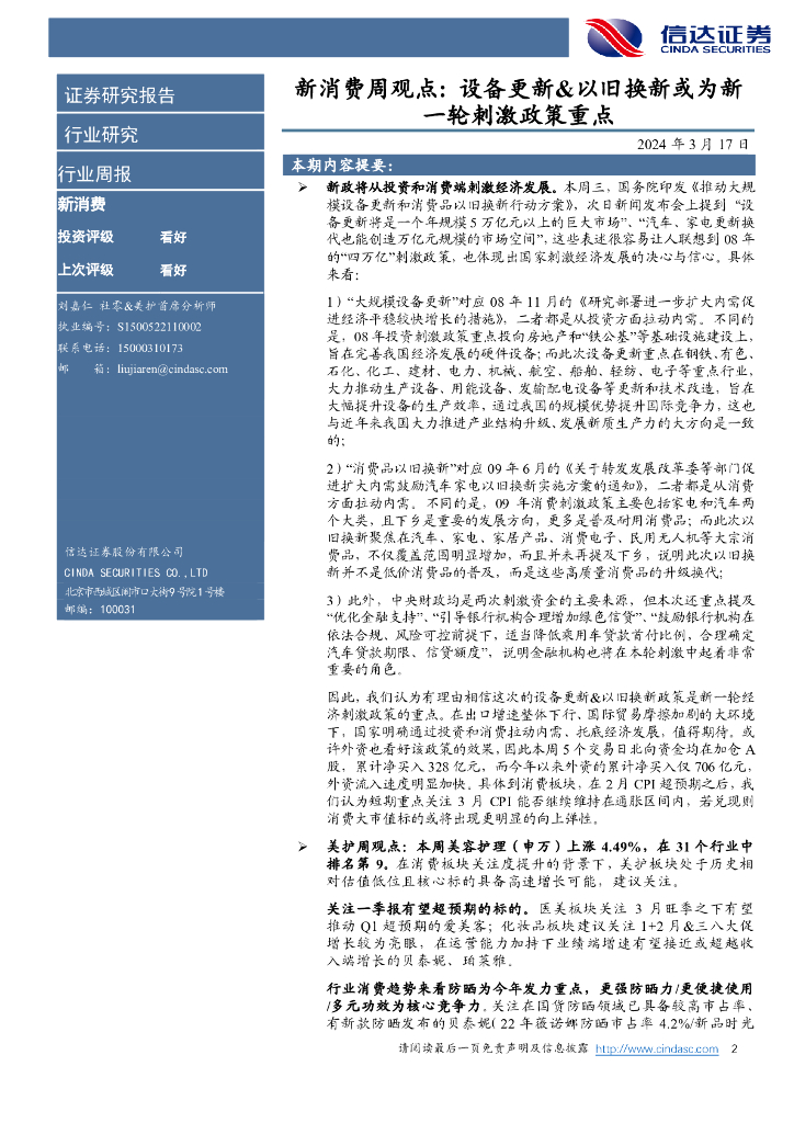 信达证券:新消费周观点:设备更新&以旧换新或为新一轮刺激政策重点.pdf