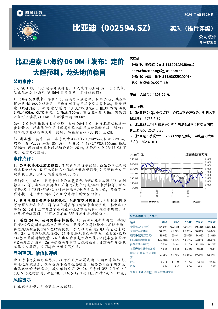 国金证券:比亚迪秦L/海豹06DM-i发布:定价大超预期,龙头地位稳固.pdf