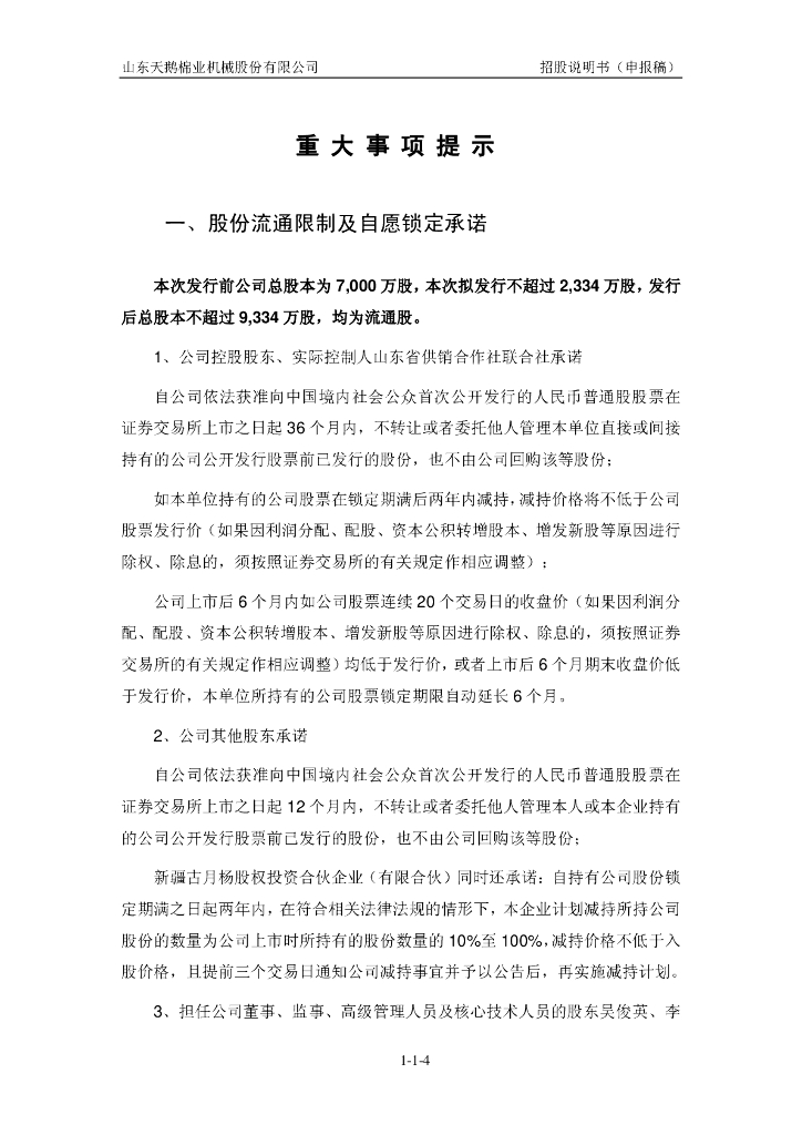 山东天鹅棉业机械股份有限公司上交所主板IPO上市招股说明书.pdf