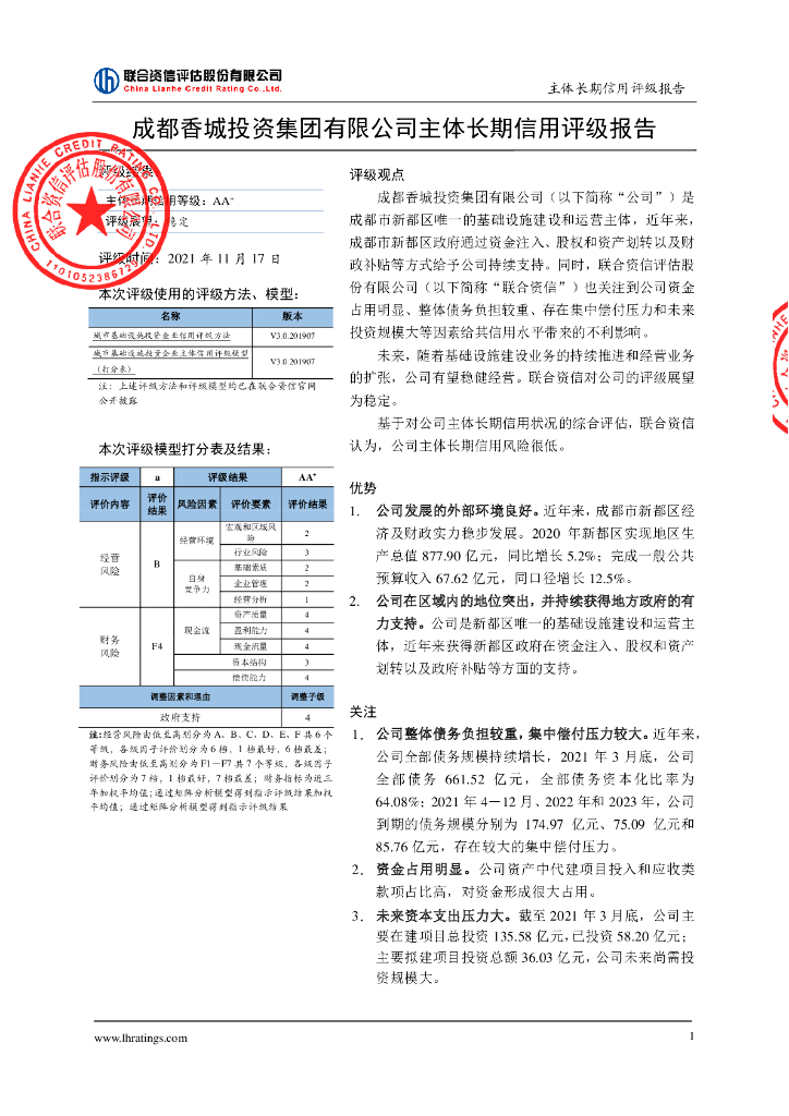 联合资信:成都香城投资集团有限公司主体信用评级报告及跟踪评级安排.pdf