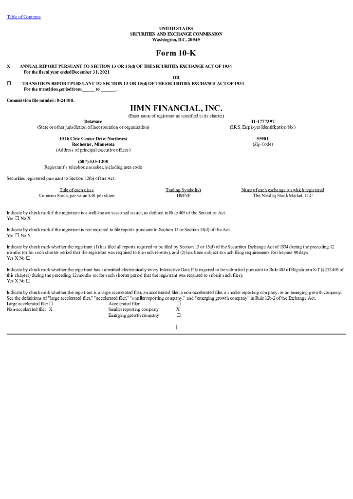 HMN Financial Inc.(HMNF)2021财年年度报告(英文版).pdf