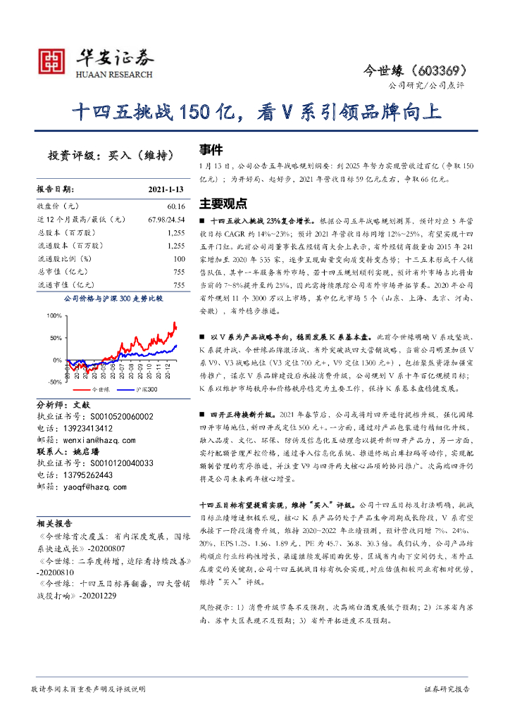 华安证券:今世缘(603369)-十四五挑战150亿,看V系引领品牌向上.pdf