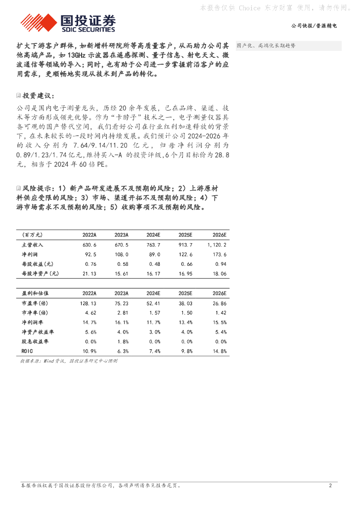 国投证券:普源精电(688337)-24H1业绩承压,高端新品放量有望带来经营拐点.pdf