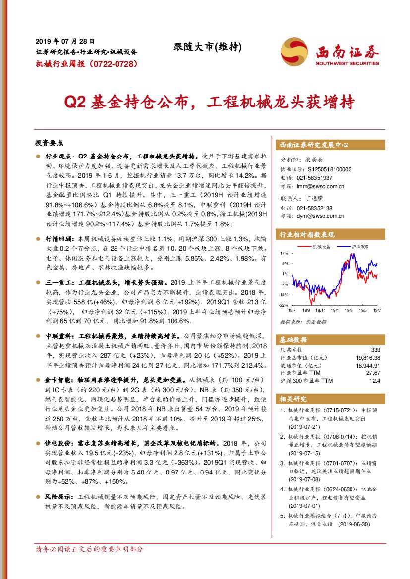 西南证券:机械行业周报:Q2基金持仓公布,工程机械龙头获增持.pdf