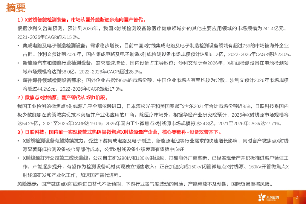 天风证券:机械设备行业专题研究:国产替代核心零部件专题:微焦点X射线源及检测装备.pdf