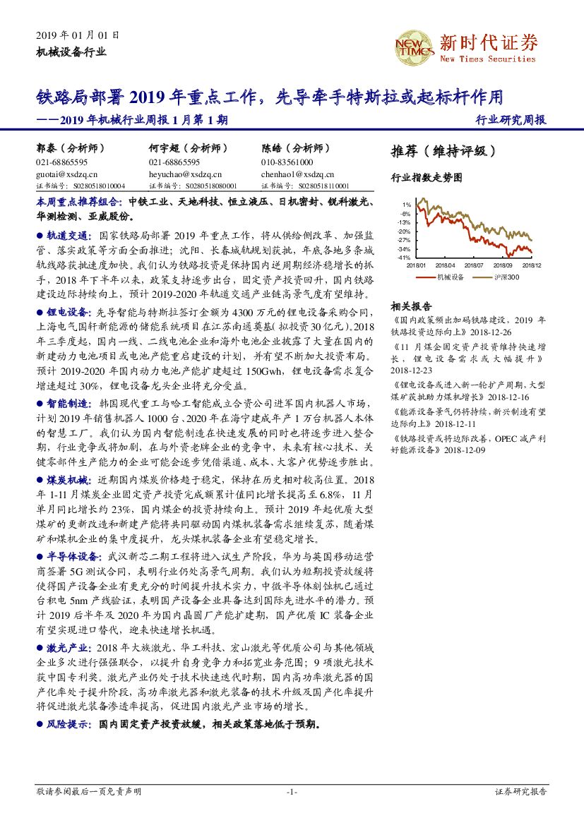 新时代证券:2019年机械行业周报1月第1期:铁路局部署2019年重点工作,先导牵手特斯拉或起标杆作用.pdf
